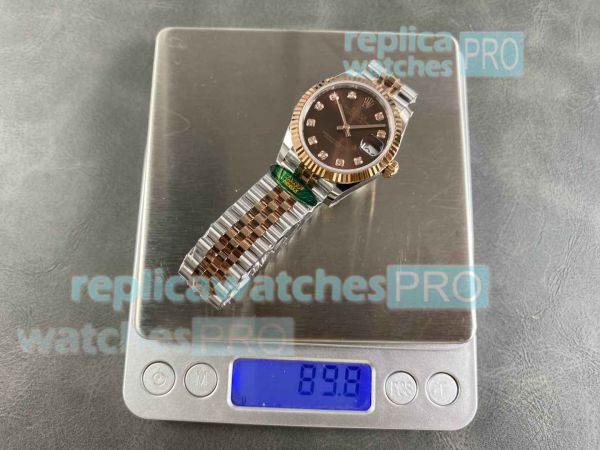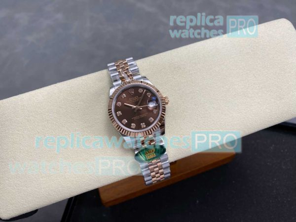 Swiss Copy ARF Rolex 31mm Datejust Two-tone Rose Gold Chocolate Diamond Dial Watch