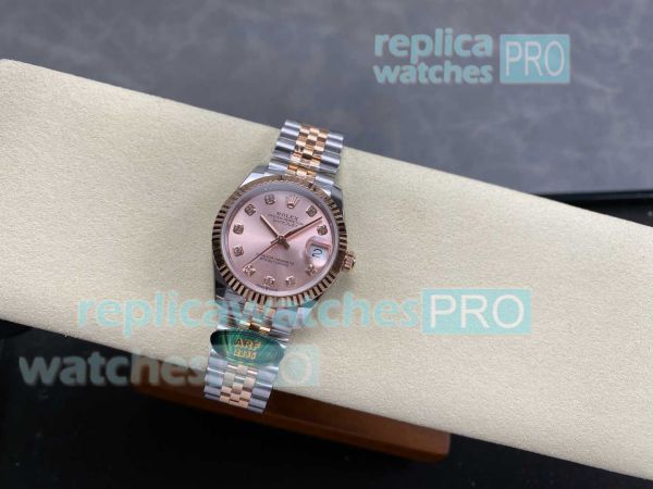 Swiss Copy ARF Rolex Datejust 31mm Ladies Pink Diamond Dial Half Rose Gold Watch