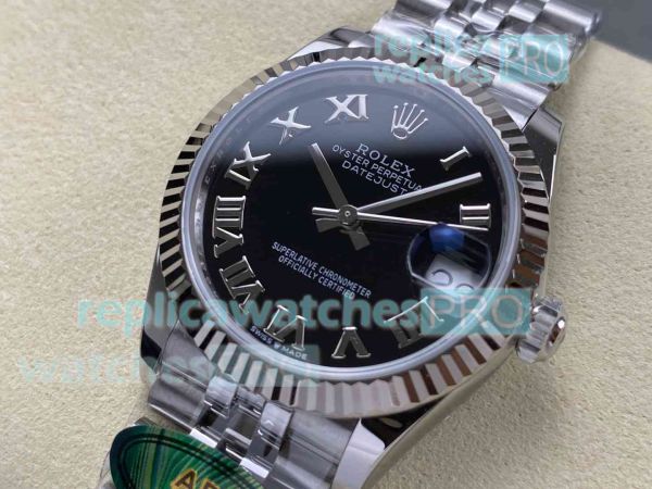 1:1 Super Clone ARF Rolex Datejust 31mm Black Roman Dial 904L Stainless Steel Watch