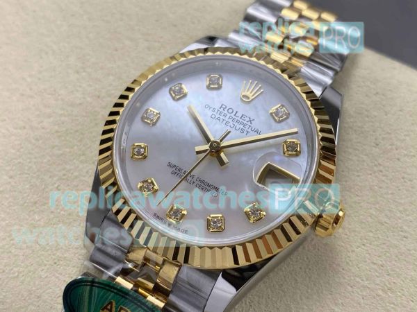 Swiss Clone Rolex Datejust ARF Lady Watch Two-Tone Mop Diamond Dial 31mm