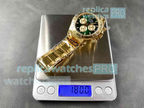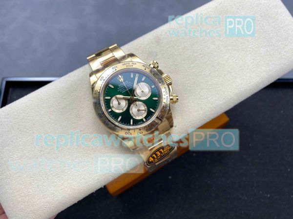 Super Replica Rolex Daytona QF 1:1 Gain Weight 4131 Yellow Gold Green Face Watch
