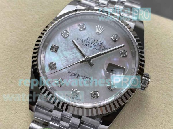 ARF 1:1 Super Replica Rolex Datejust 36mm MOP Diamond Dial 904L Stainless Steel Jubilee Watch