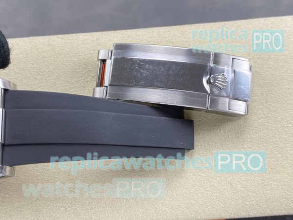 Band: Black oysterflex rubber watch band with folding clasp