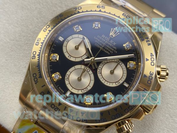Swiss Replica 4131 ARF Rolex Daytona Black Diamond Dial Oyster Yellow Gold Watch