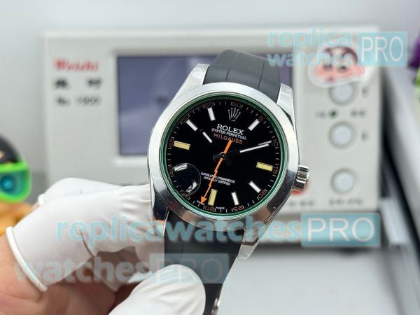 Swiss Cal.3131 VS Factory 1:1 Replica Rolex Milgauss Black Dial Black Rubber Strap Watch