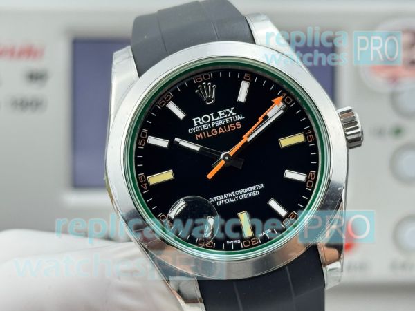 VS Factory Super Replica Rolex Milgauss Black Dial Swiss 3131 Rubber Strap Watch