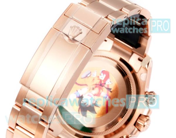 Band: Rose gold coated 904L stainless steel watch band with folding clasp