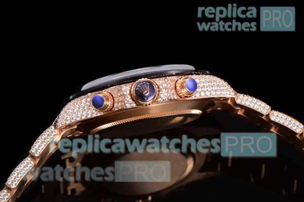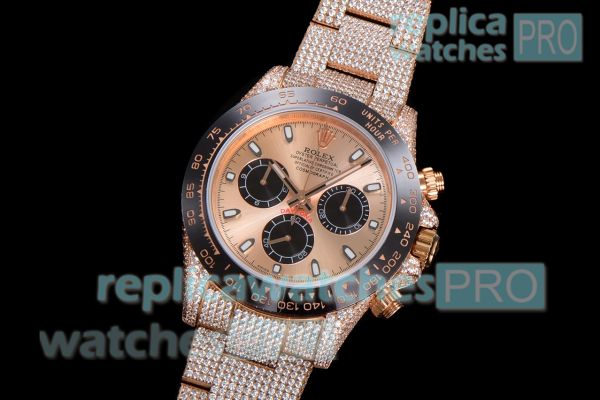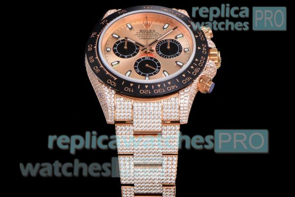 Swiss Replica Iced Out Rolex Cosmo Daytona 7750 Diamond Watch. Everything is detailed and same as original. Buy now and 100% satisfaction guaranteed. You will receive the same replica watch shown in picture.