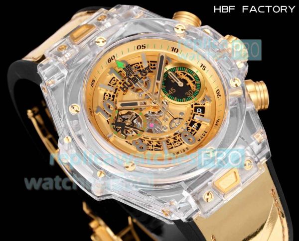HBF Swiss Clone Hublot Big Bang Unico Chronograph Yellow Sapphire Watch 45mm
