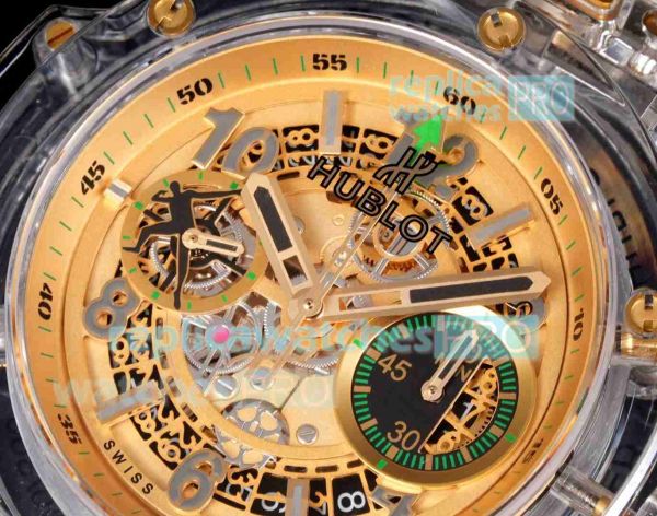 Swiss Grade 1 Replica HBF Hublot Big Bang Unico Yellow Gold Skeleton Sapphire Watch