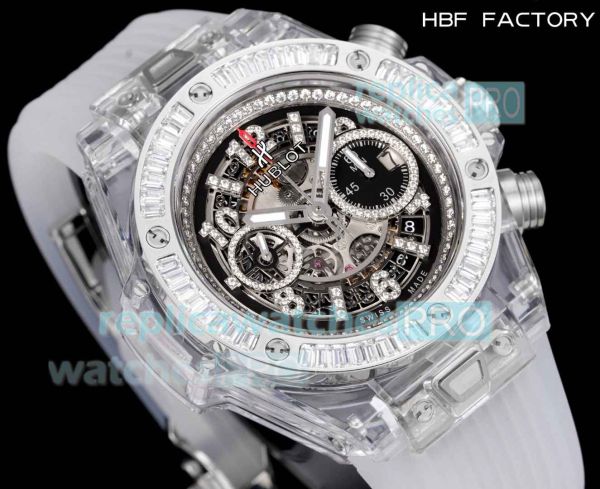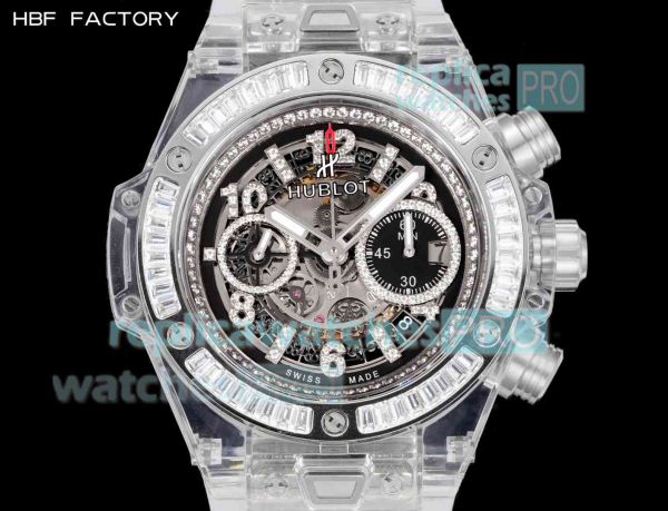 Super Clone HBF Hublot Big Bang Unico Sapphire Skeleton Baguette Diamond Watch