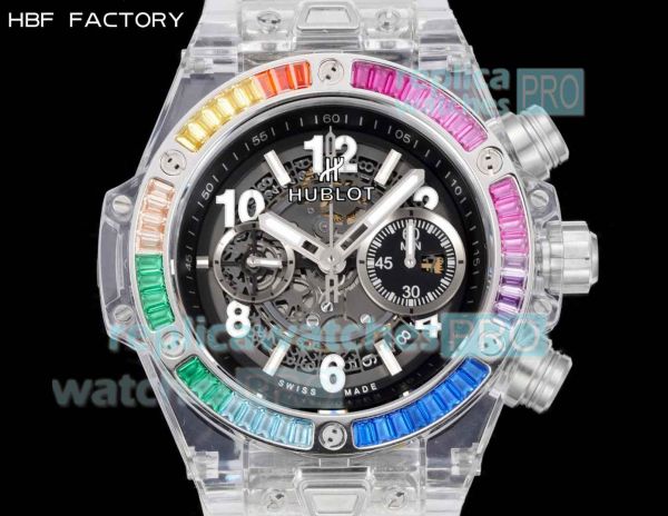 Swiss Grade 1 Replica HBF Hublot Big Bang Unico Sapphire 45mm Rainbow Diamond Watch