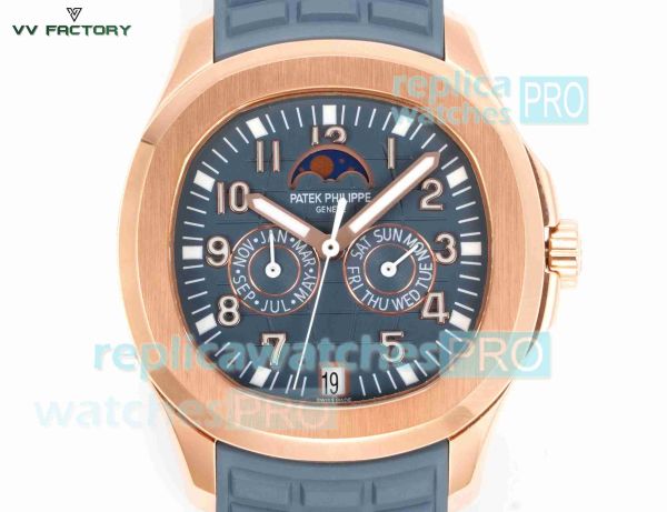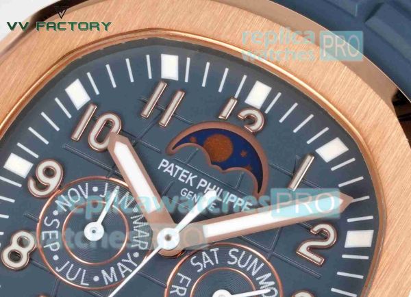 VV Factory Super Replica Patek Philippe Aquanaut Luce Annual Calendar Rose Gold Blue Face Watch