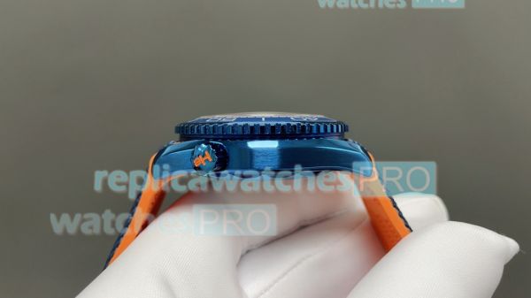 • Bracelet: Blue and Orange Gummy watch band with Deployment buckle
