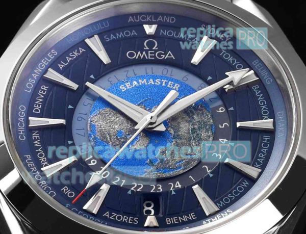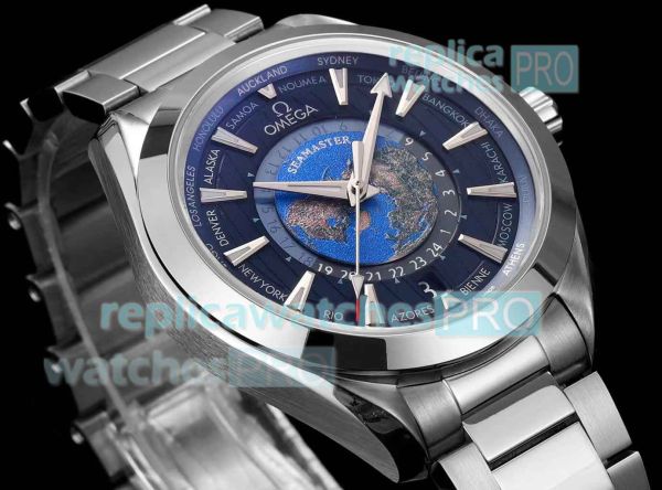 Swiss Grade 1 Replica Omega Seamaster Aqua Terra 150m Worldtimer Blue Dial 904L SS Watch