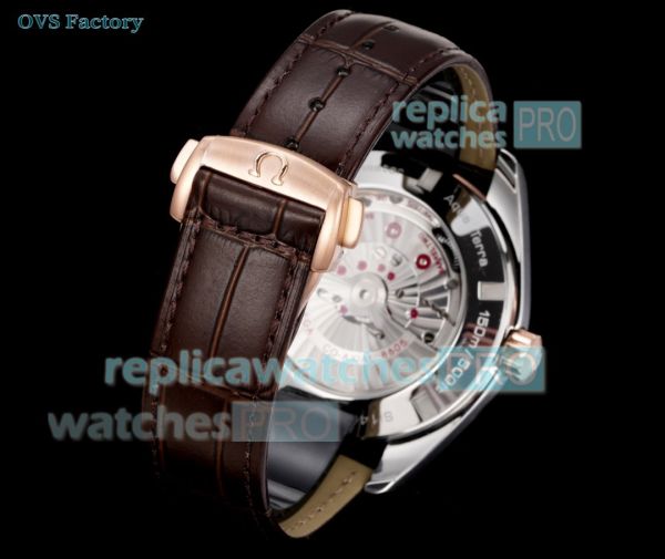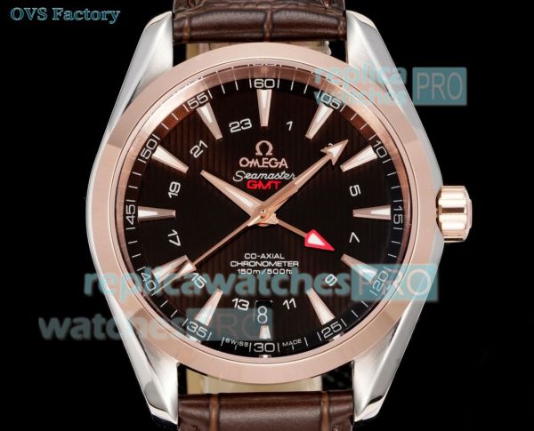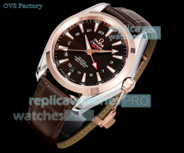 OVS Factory 1:1 Clone Omega Seamaster Aqua Terra GMT Rose Gold Brown Dial Watch