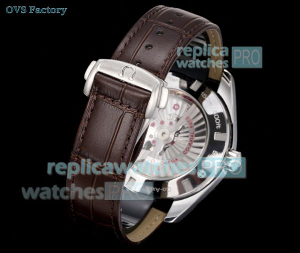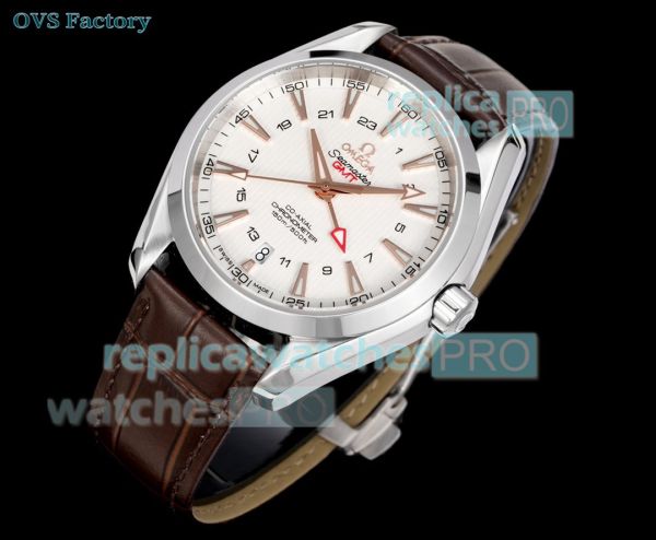 Swiss Grade 1 OVS Factory Omega Seamaster Aqua Terra White Face GMT Brown Leather Strap Watch