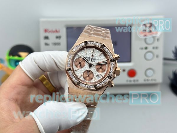 Swiss Grade 1 Audemars Piguet Royal Oak 38mm Diamond 7750 Chronograph Watch. Everything is detailed and same as original. Buy now and 100% satisfaction guaranteed. You will receive the same replica watch shown in picture.