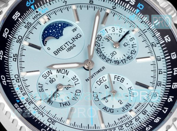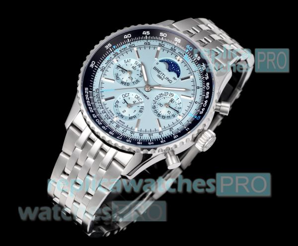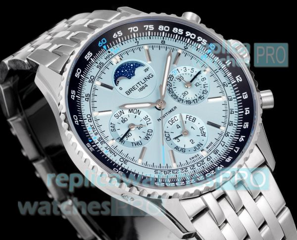 Swiss Replica V9 Factory Breitling Navitimer B19 Ice Blue Face 140th Anniversary 316L Steel Watch