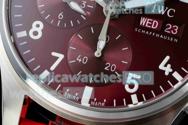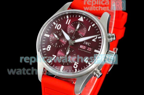 Swiss Grade 1 BLS IWC Pilot's Chronograph 41mm Burgundy Dial Rubber Strap Watch