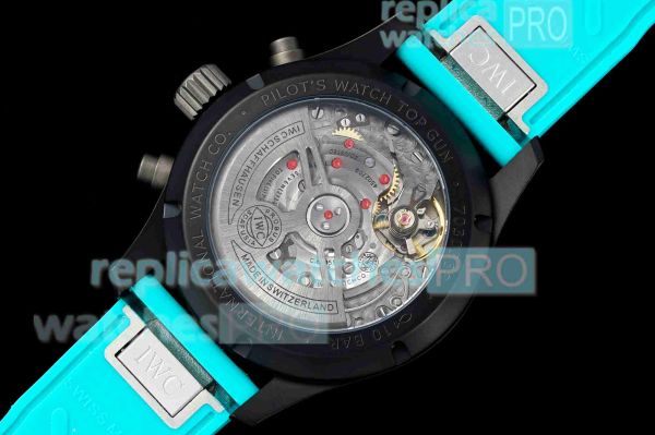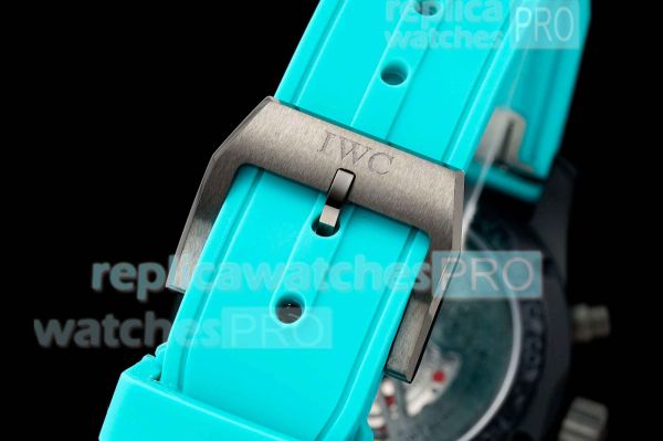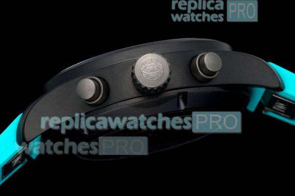 BLS Swiss Copy IWC Pilot's Chronograph 41mm Black Case Blue Rubber Strap Watch