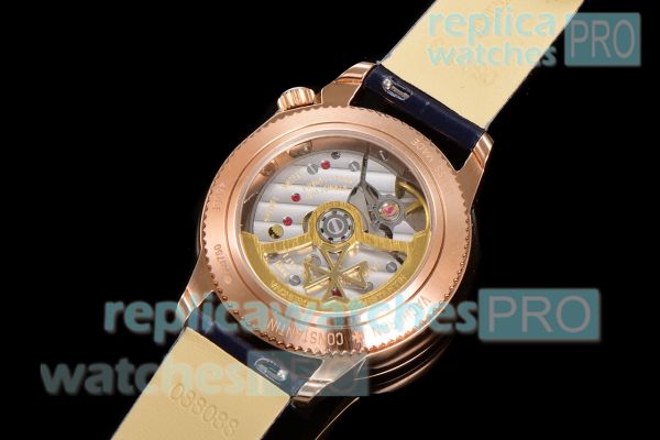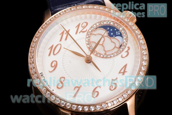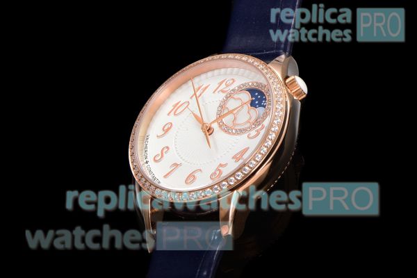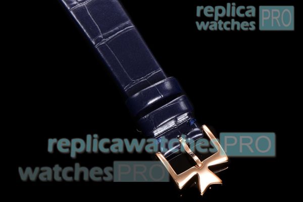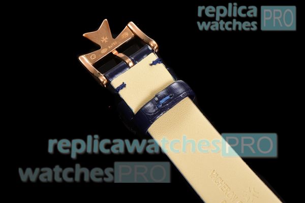 Swiss Replica GR Factory Vacheron Constantin V3 Égérie Rose Gold Diamond Blue Leather Strap Watch