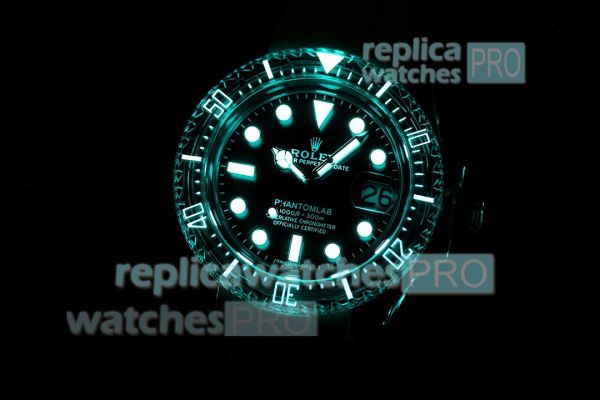 Swiss 2824 Replica Rolex Phantomlab Submariner Black Face Transparent Rubber Strap Watch