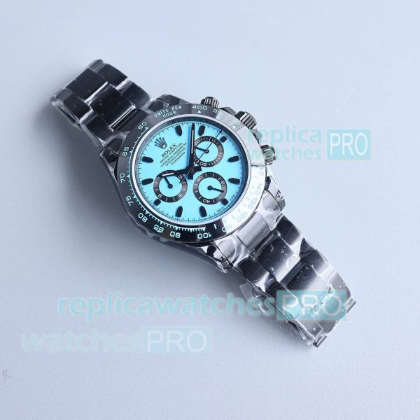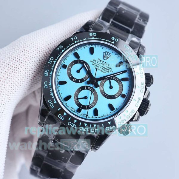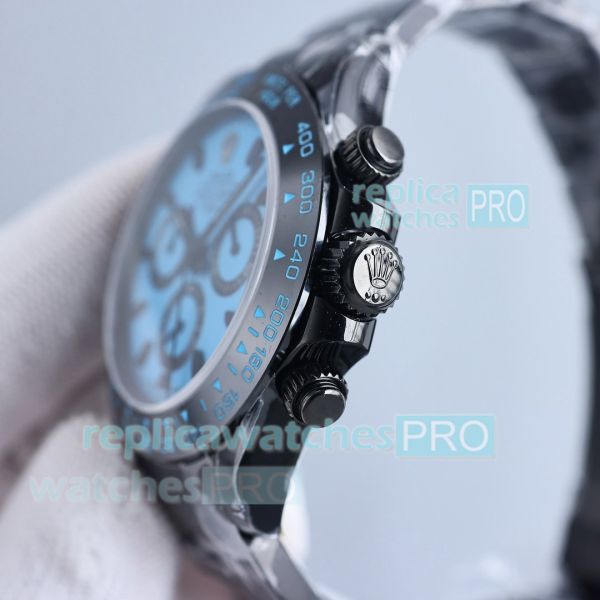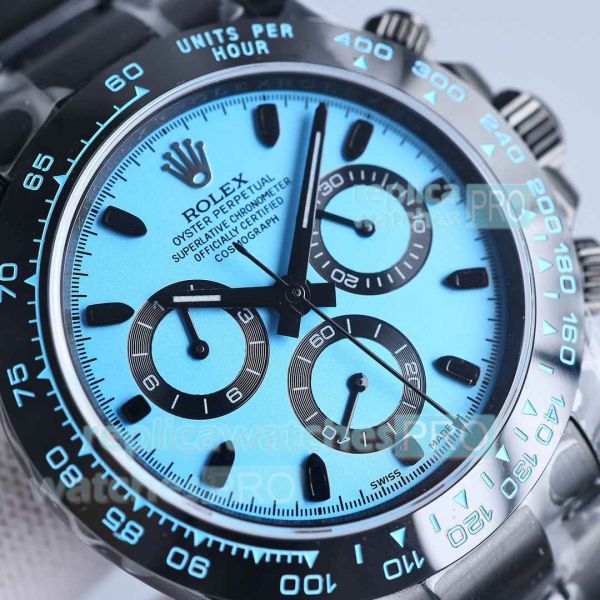 Super Replica Rolex Blaken Daytona Extra Thin Light Blue Dial 7750 Chronograph Black Watch