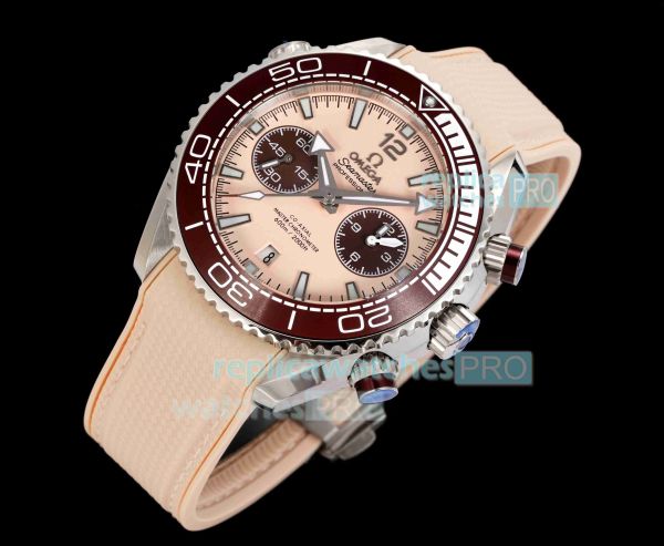 TVS Swiss 9900 Clone Omega Seamaster Planet Ocean 600m Beige Rubber Strap Watch
