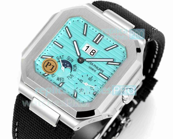 P1 Factory Super 1:1 Patek Philippe Cubitus 5822P Grand Date Tiffany Blue Dial Moon Phase Watch