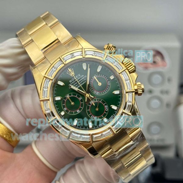 PPM Factory Super Clone Rolex Cosmo Daytona Baguettes 4801 Chronograph Watch. Everything is detailed and same as original. Buy now and 100% satisfaction guaranteed. You will receive the same replica watch shown in picture.