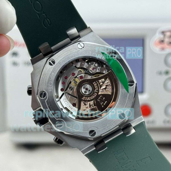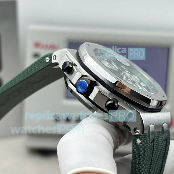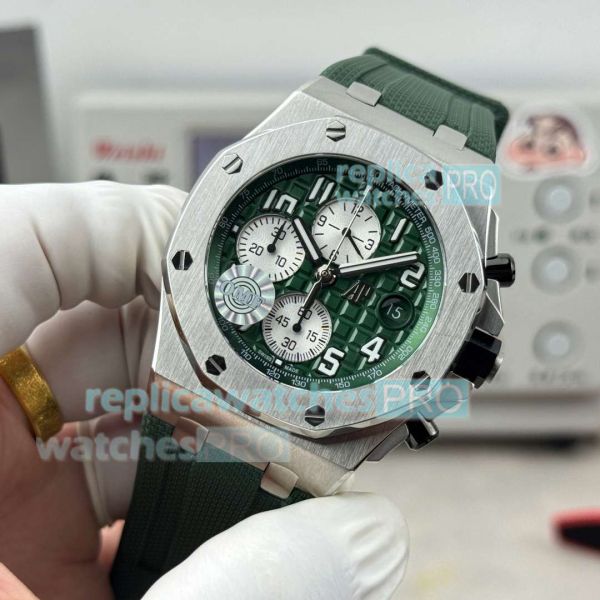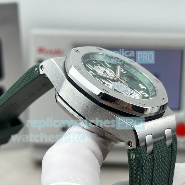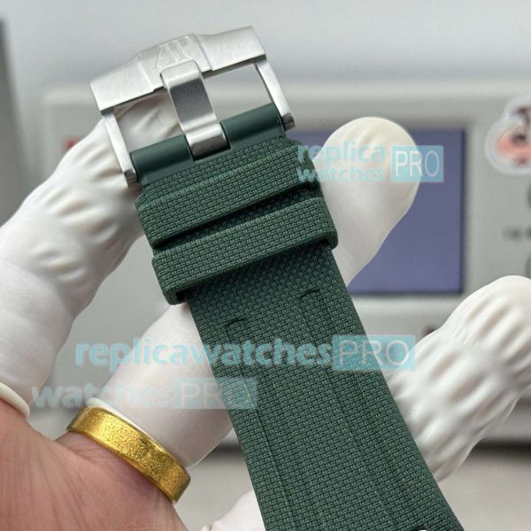 Strap: Swiss quality green rubber strap with AP logo pin buckle