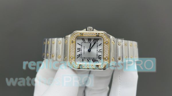 Swiss Replica Cartier Santos Two-Tone Diamond Mini Ladies Automatic Watch