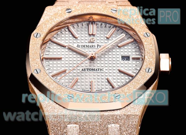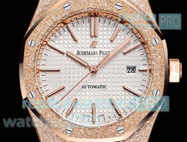 OMF 1:1 Swiss Replica Audemars Piguet Royal Oak 15400 Frost Gold Watch. Everything is detailed and same as original. Buy now and 100% satisfaction guaranteed. You will receive the same replica watch shown in picture.