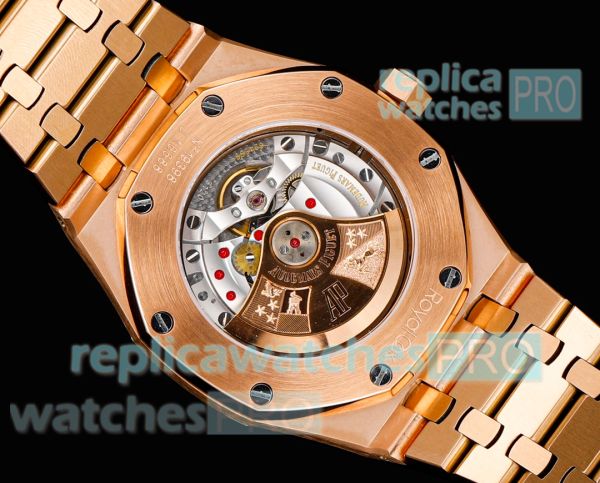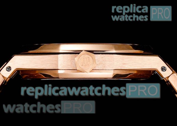 Strap: Frosted Rose Gold Watch band with Audemars Piguet Logo on buckle