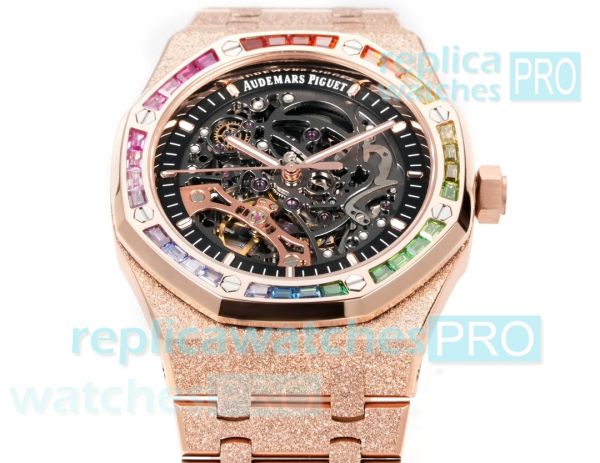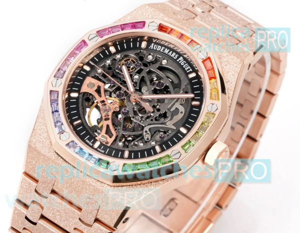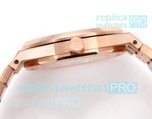 Strap: Frosted Rose Gold Watch band with Audemars Piguet Logo on buckle