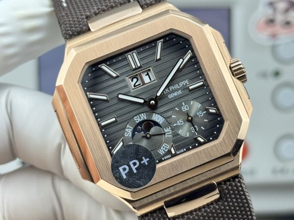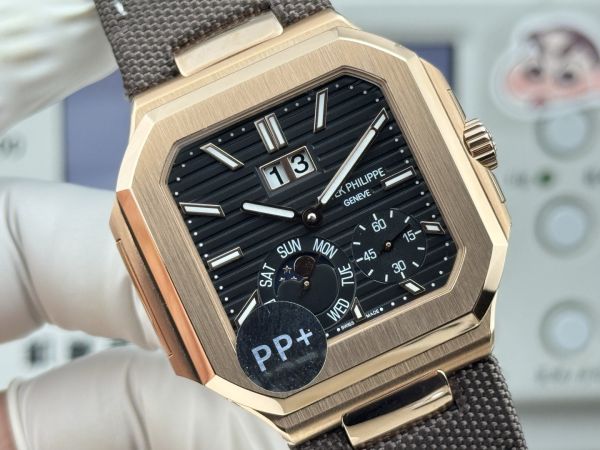 PP+Factory Super 1-1 Patek Philippe CUBITUS Grand Date Rose Gold Black Dial Watch